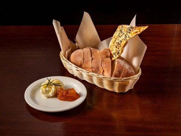 Garlic rubbed bread, Grilled eggplant, tomato concasse, basil pesto