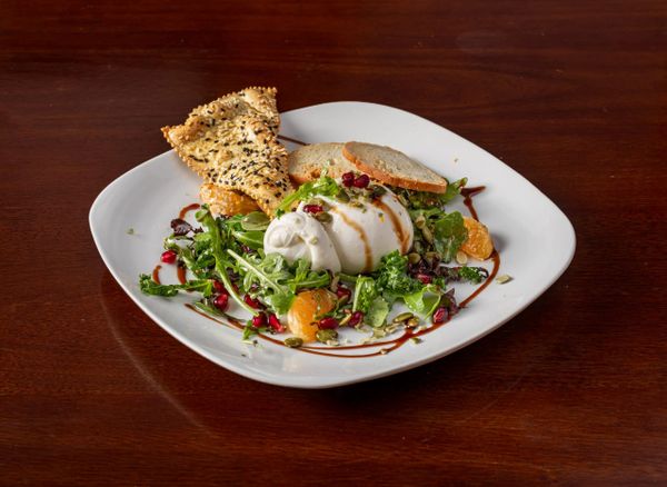 Stracciatella cheese, toasted pistachios, lemon and olive oil